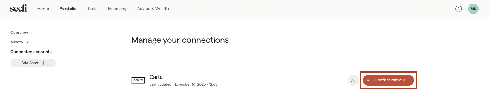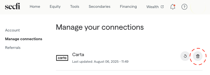 Disconnecting your Carta account from Secfi can be done quickly and easily.