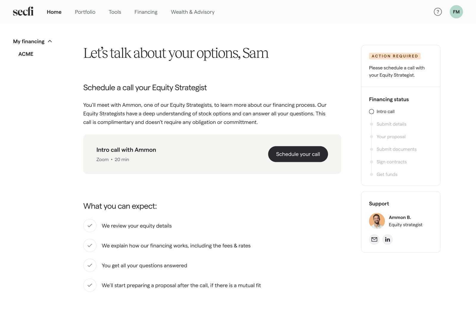 Depending on your situation, our application review process can take some time. Once our Equity Strategist team reviews your application, you will be able to schedule an introductory call.