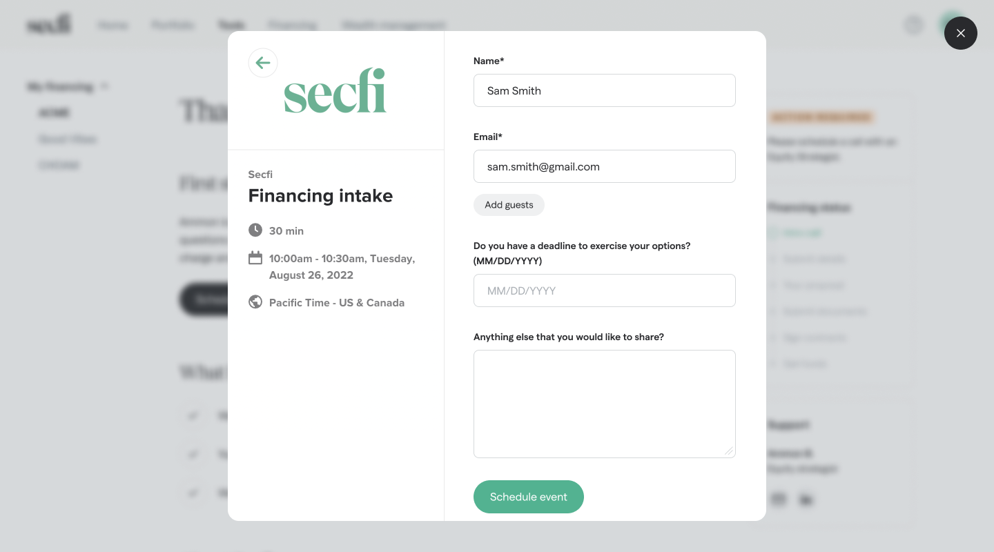 Please contact us at financing@secfi.com if you cannot wait till the intro call – we know how important it is to make your deadline!